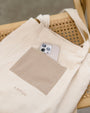内側には小物の整理に便利なポケット、さらに外側の背面にもポケットを備え、すぐ取り出したい物の収納にも便利です。