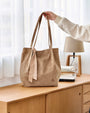 やわらかな風合いのコーデュロイ素材を使用したトートバッグ。