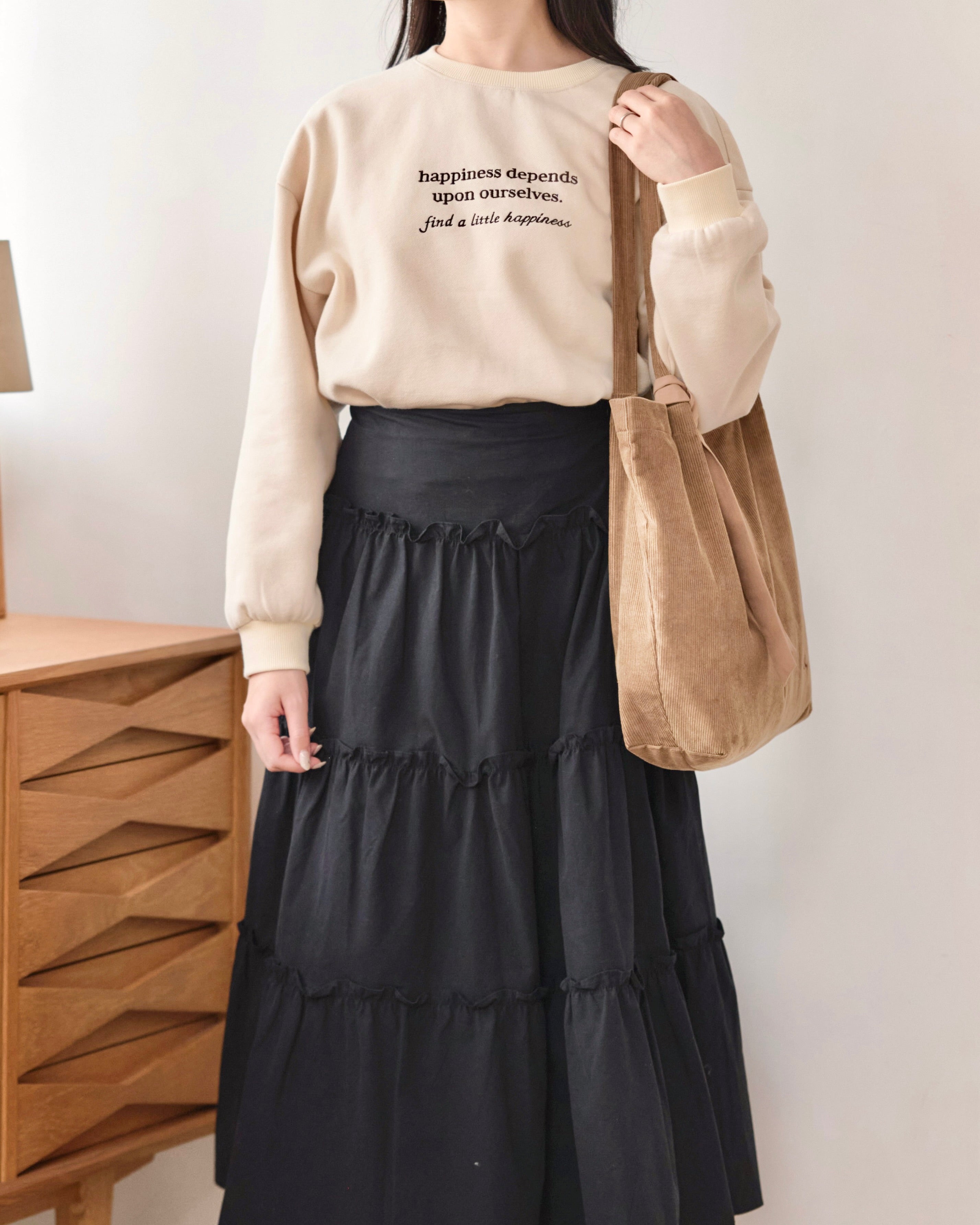 程よく厚みのある生地で、くたっとしすぎず、日常使いしやすいデザインです。