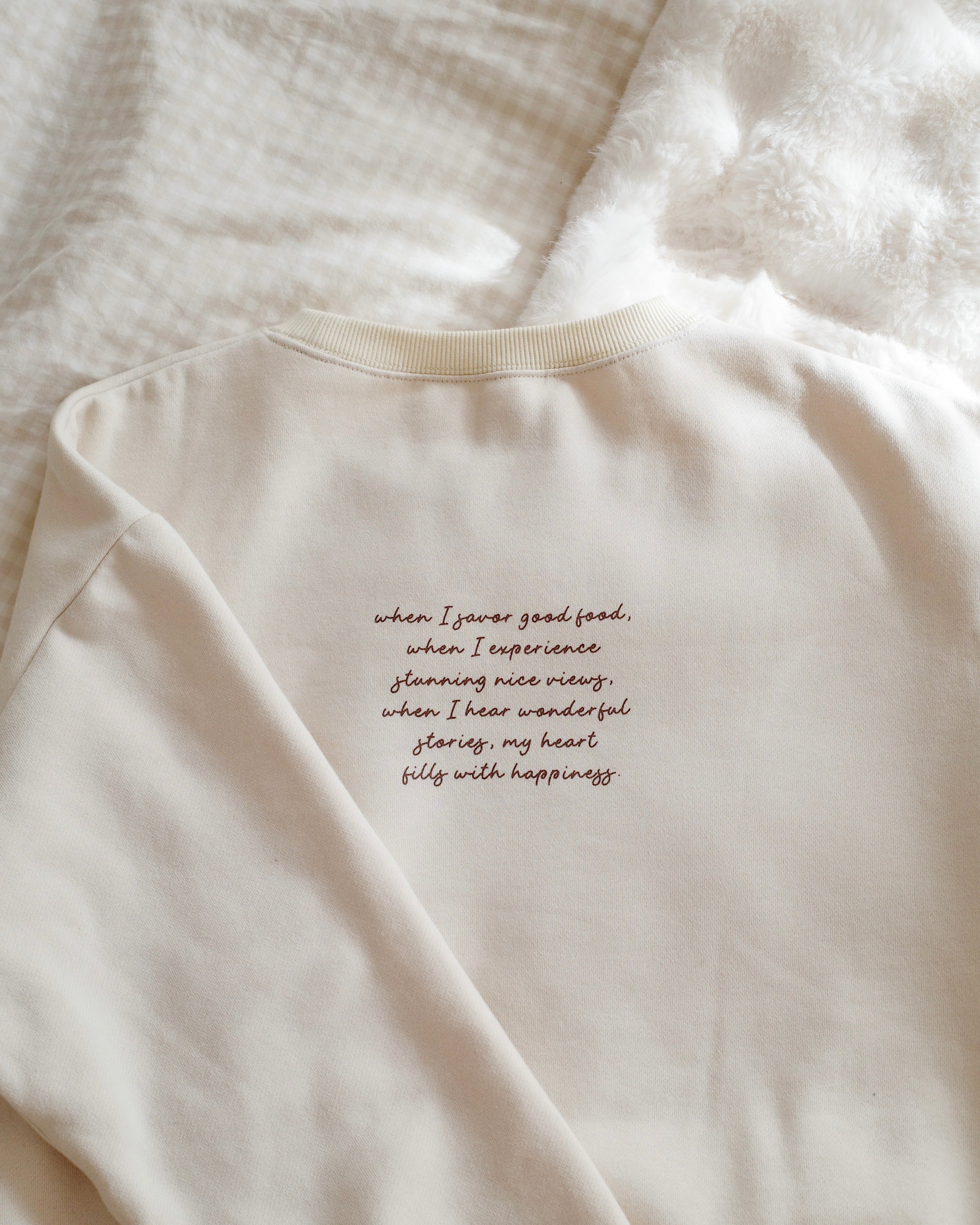 やさしい色合いと、心にそっと寄り添うメッセージを添えたロゴスウェット。
