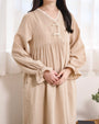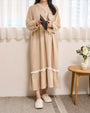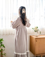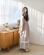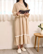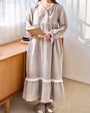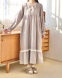 やわらかな風合いの生地をたっぷりと使用した、落ち着きのある佇まいのロングワンピース。